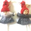 2 grå nisser med hue og snor ophæng & med bøjelige arme og snor i huen til ophæng