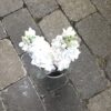 Almindelig levkøj i lerpotte fin hvid potteblomst med legakugler i bunden