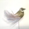- Super dekorativ lille fugl med rigtige halefjer i brune nuancer