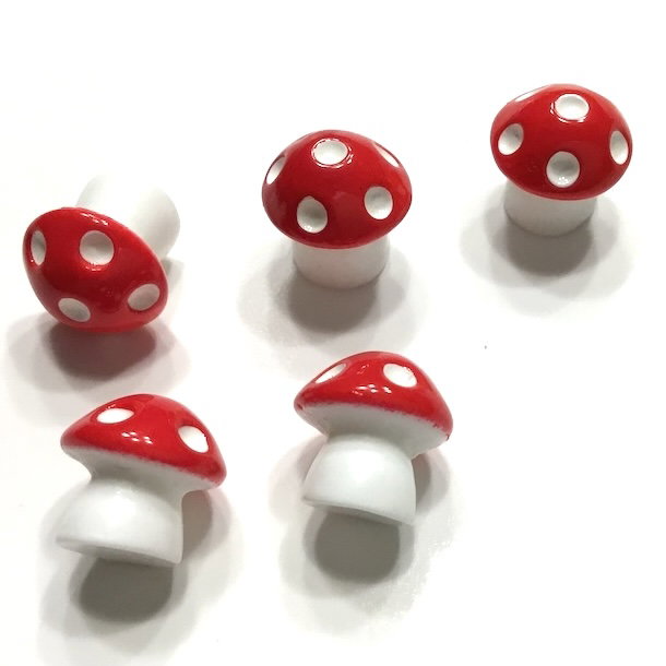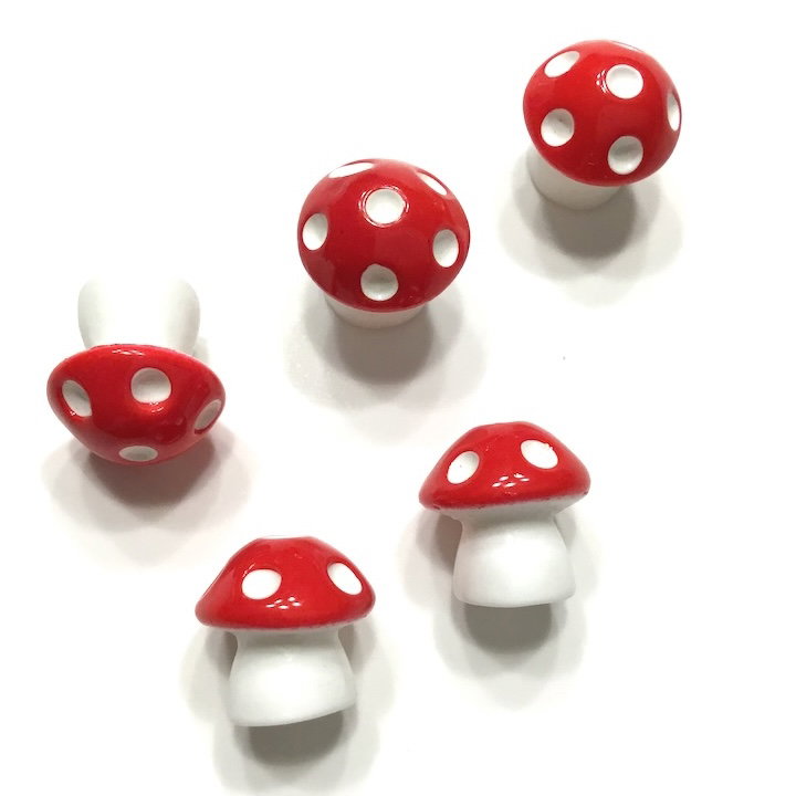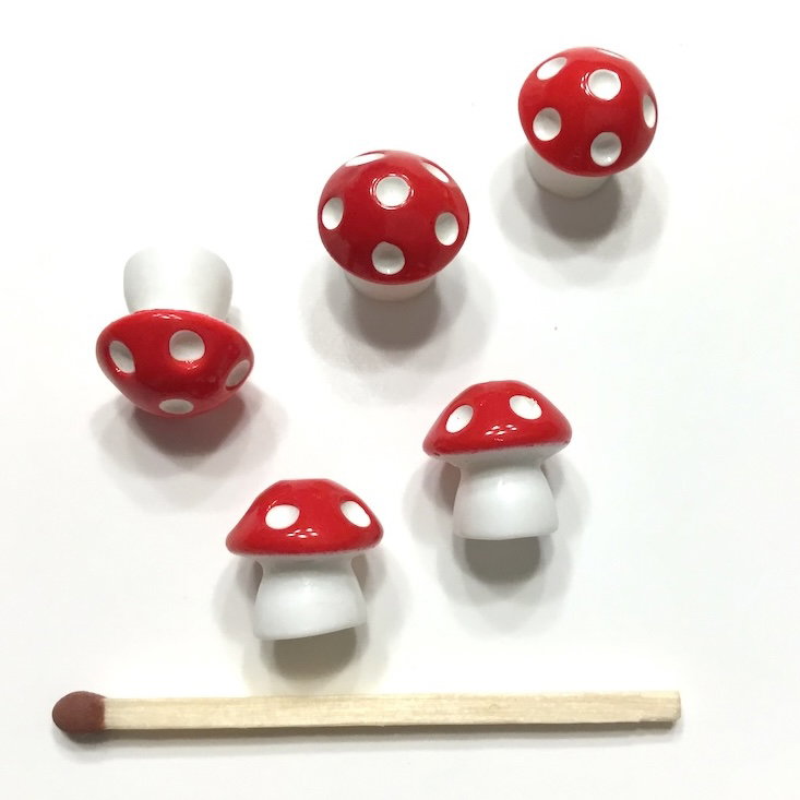 Virkelig bitte små dekorative paddehatte med hvide pletter – se billeder.