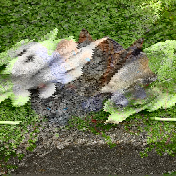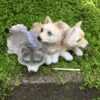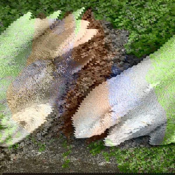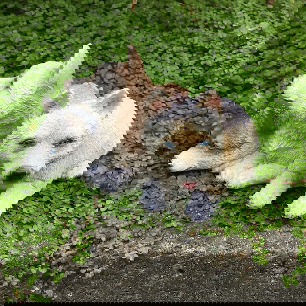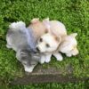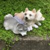 Dekorativ hundefigur i poly med slædehunde der ligger ned.