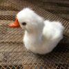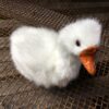 Dekorativ svane med blød hvid pels findes også i mindre størrelse
