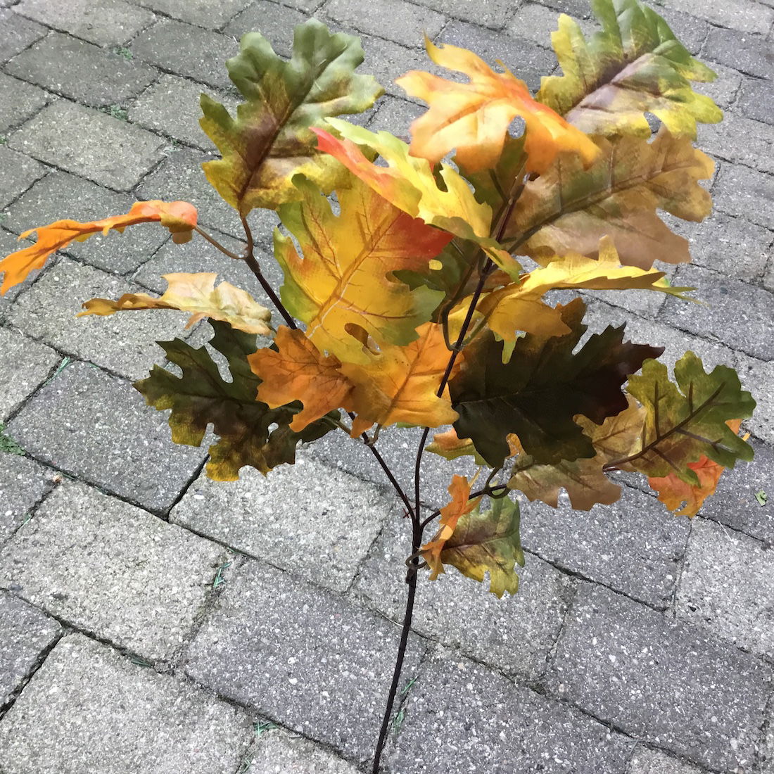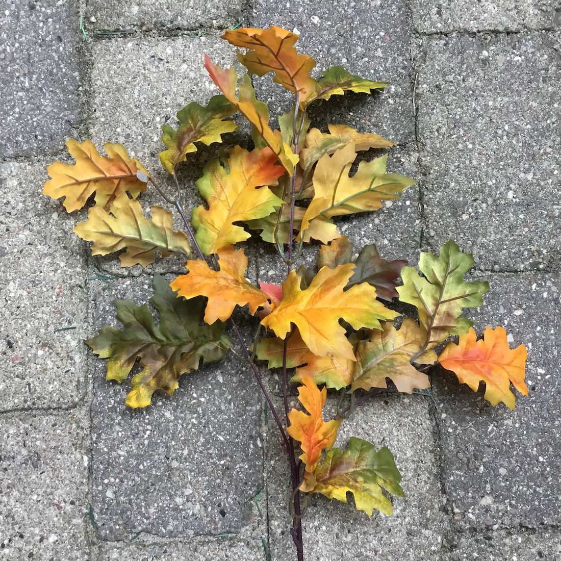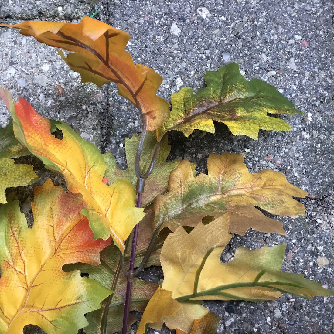 Blade: De fyldige blade er lavet af silke/polyester og har et naturtro udtryk med prægede detaljer på hvert egeblad. De ser utroligt realistiske ud og giver en autentisk efterårsfornemmelse.