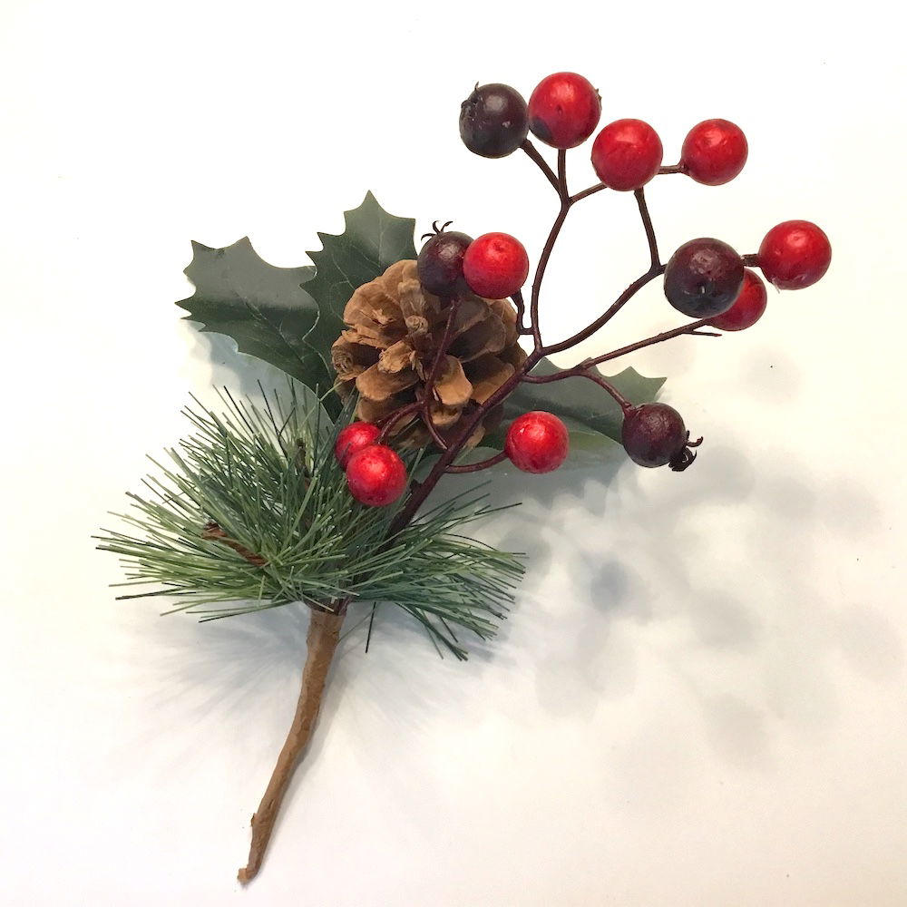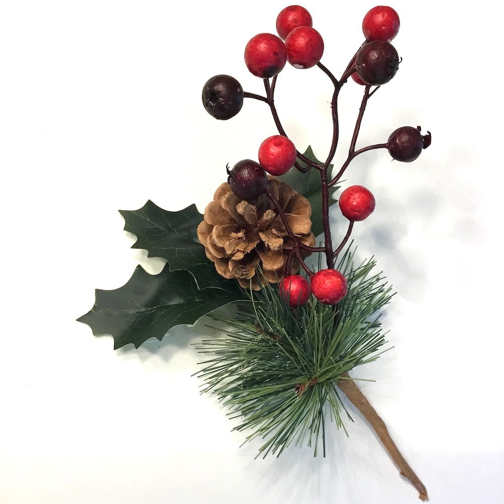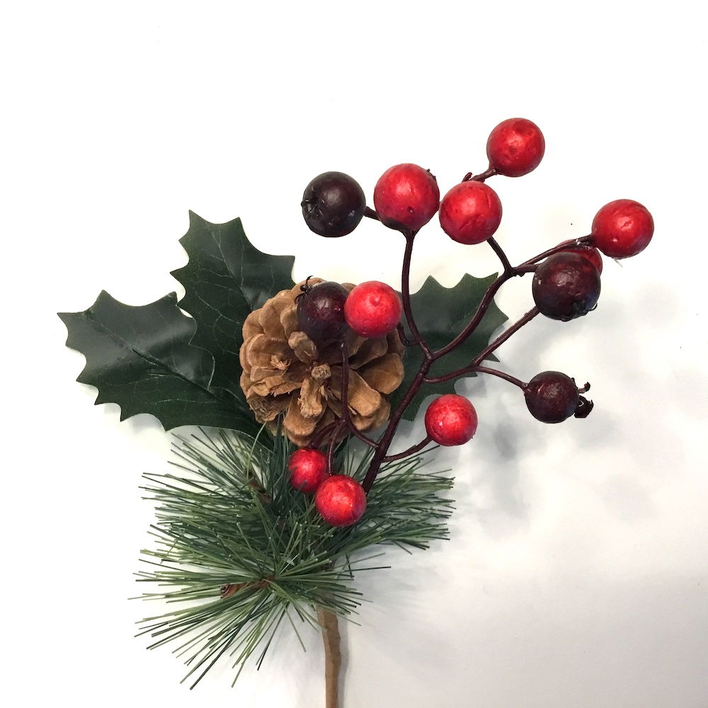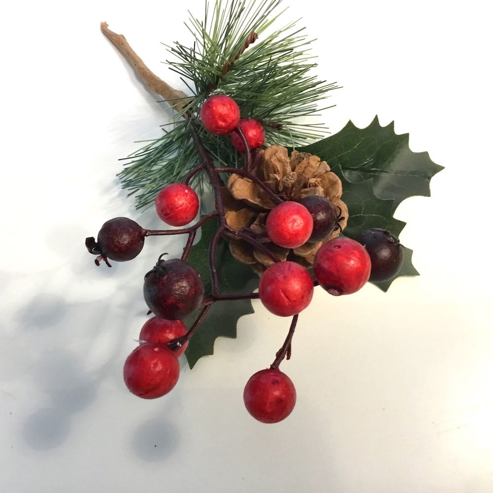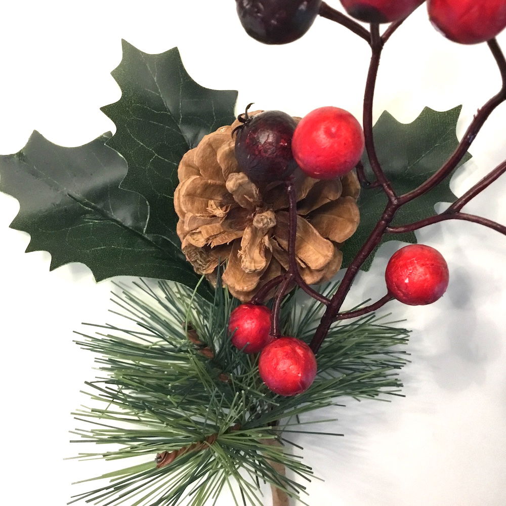 Fyrgren med kristjørn & bær, samt kogle til dekoration den er yderst naturtro og livagtige
