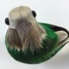 - Fuglen har et spidst næb og to små øjne, der giver den et livligt udtryk.