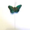 Grøn stor fjer sommerfugl på pind dekorativ med mørke skygger