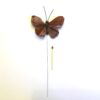 Gyldenbrun lille dekorativ sommerfugl på pind med lyseblå pletter
