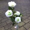 Høj dekorativ råhvid rose med mange hoveder og grønne blade