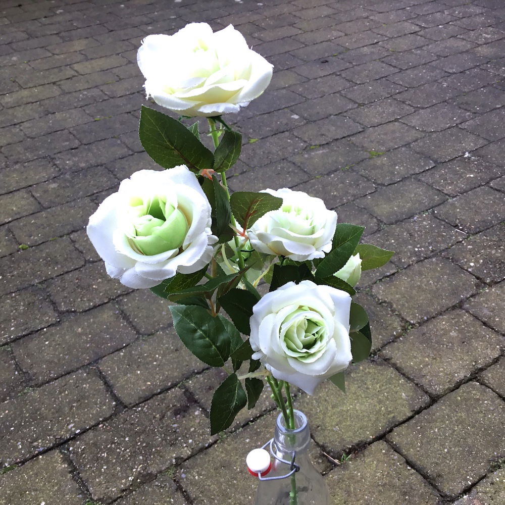 Mange af vores rosengrene med mange eller få blomster kommer virkelig til sin ret i en høj dekorativ vase eller krukke.