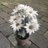Hvid marguerit i lerpotte fin hvid potteblomst med legakugler i bunden