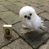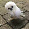 Hvid ugle med fjerdragt der står med skønne store øjne