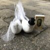 - Hvide duer til bryllup har en clips i bunden, så den kan sættes på en gren eller lign,