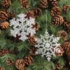 Fængslende snefnug med glimmer til ophæng, der er 2 forskellige modeller. Skab en magisk juleatmosfære med vores elegante snefnug!
