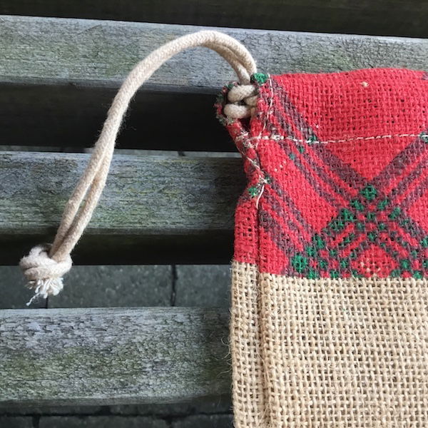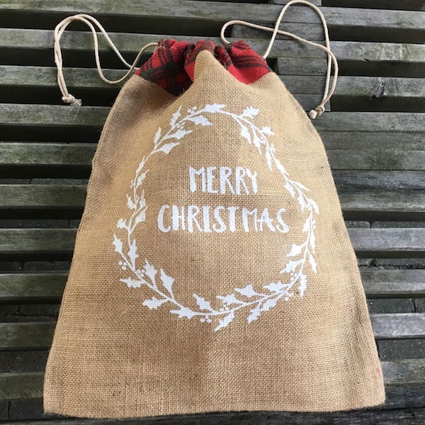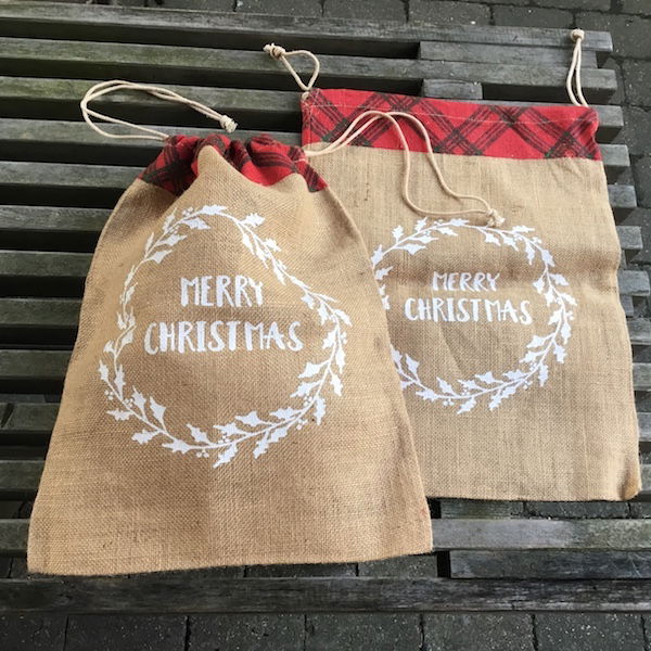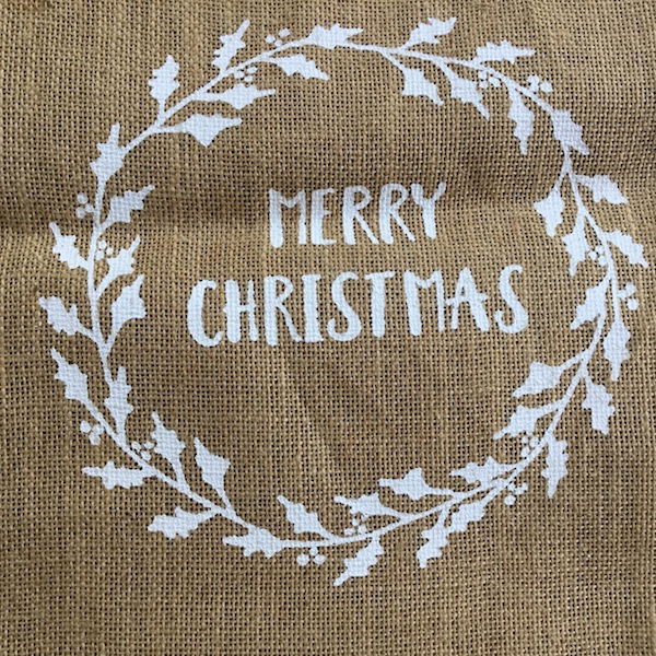 Lærredspose, den helt rigtige til julepakker eller kalendergaver Teksten er – Merry Christmas