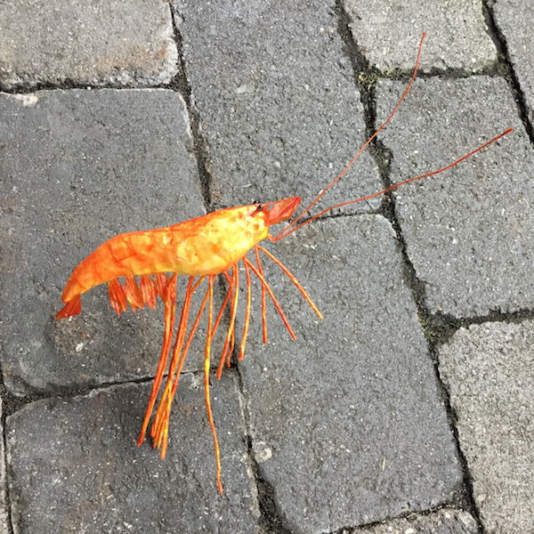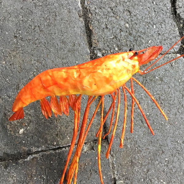 Kæmpe reje på pind til dekoration super naturtro trods størrelsen