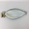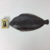 Kunstig fisk i plastik, og den er 27 cm lang og 12 cm bred – den vejer 80 g.