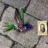Kolibri fuglen er et smukt og dekorativt tilbehør til ethvert hjem. Fuglen er lavet af flamingo og pyntet med fjer og pailletter, og den er 17 cm lang. Fuglen har en tynd snor til ophæng, så den nemt kan sættes op i en dekoration eller på en gren eller i et træ.