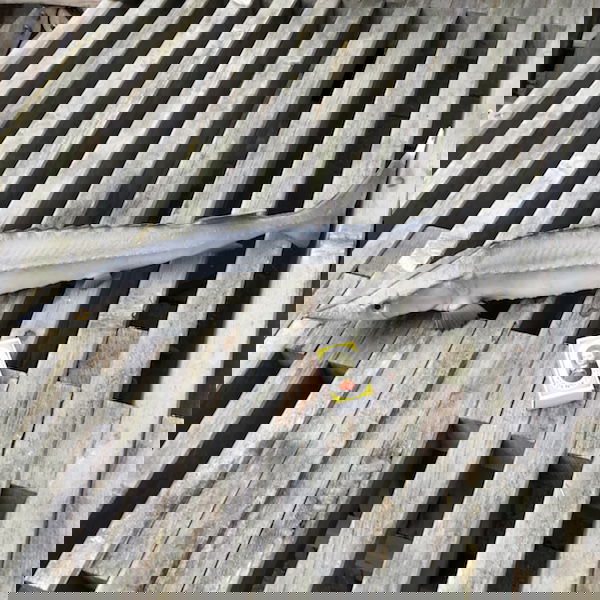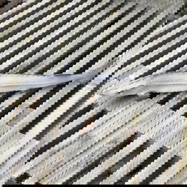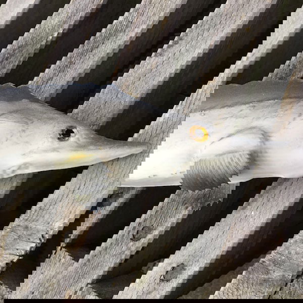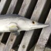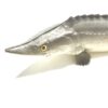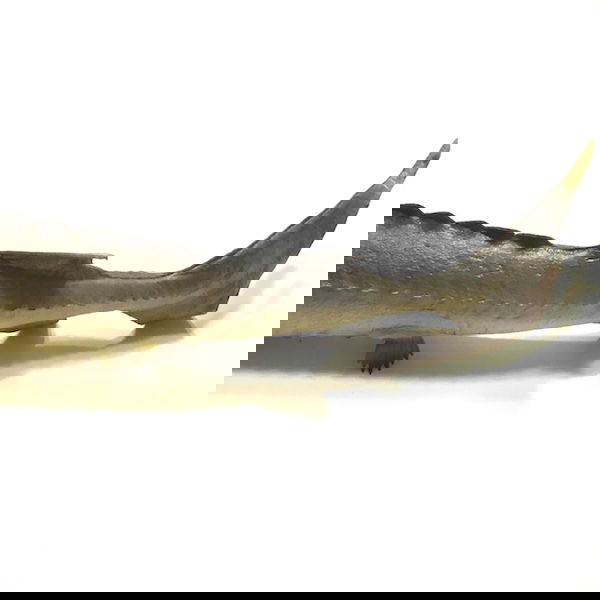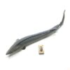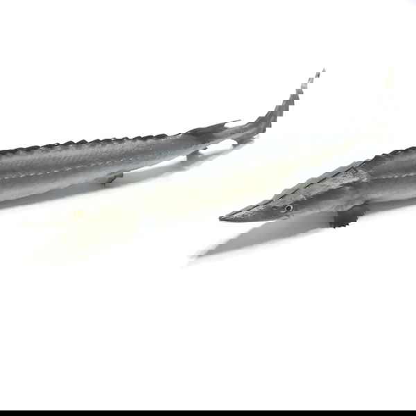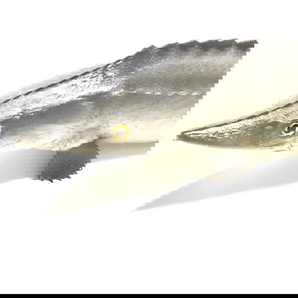 Kunstig stør i gummi / plastik, halen kan forsigtig bøjes og den mærkes også rigtig.