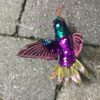 Kolibri fuglen er et smukt og dekorativt tilbehør til ethvert hjem. Fuglen er lavet af flamingo og pyntet med fjer og pailletter, og den er 17 cm lang. Fuglen har en tynd snor til ophæng, så den nemt kan sættes op i en dekoration eller på en gren eller i et træ.