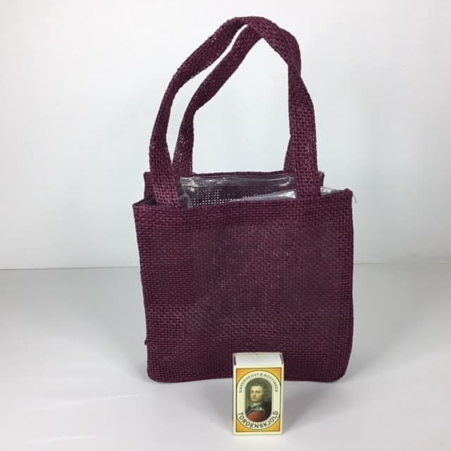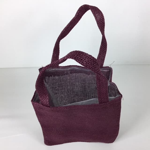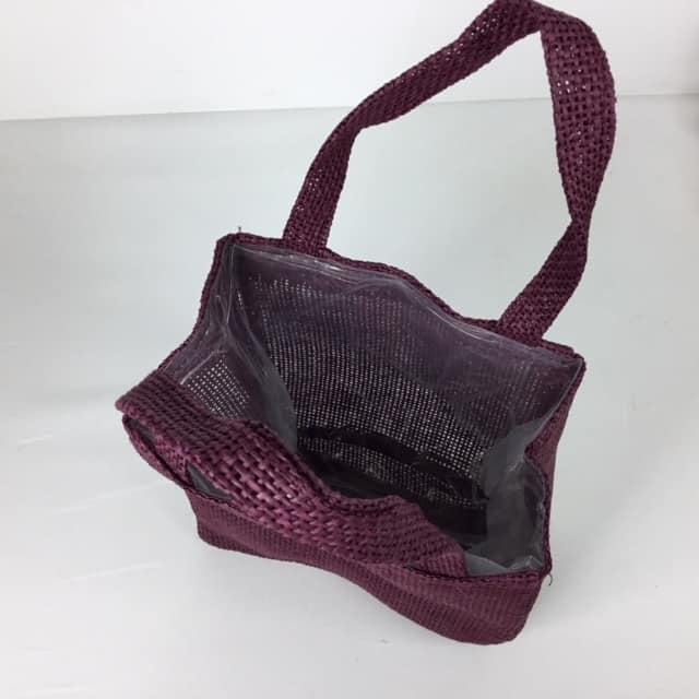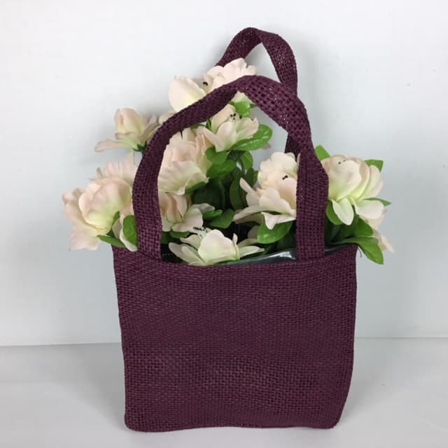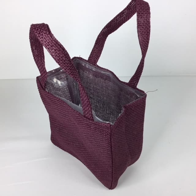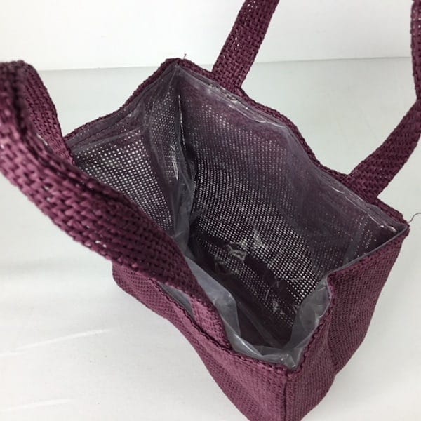 Lærreds pose i blommefarvet med hank og med plastik indlæg