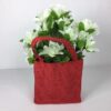 Lærreds pose i rød med hank og med plastik indlæg