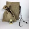Lille lærredspose – helt uden tryk, også den helt rigtige til små julepakker eller kalendergaver. Dekorativ lille lærredspose med knyttet brunt bånd.