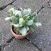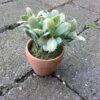 Lille dekorativ grøn kaktus i lerpotte med mos i bunden