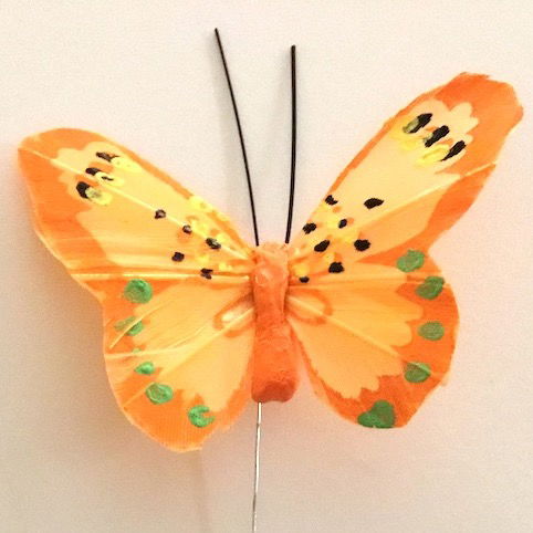 Denne sommerfugl har en påsat ståltråd, så de nemt kan sættes fast på eksempelvis planter og blomster.