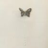 Sommerfuglen har ståltrådspind nedenunder, pinden er 15 cm lang.