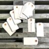 Dette er den mindste størrelse 3 x 6 cm, og pakken indeholder 35 stk tags med forstærket hul.
