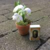 Lille vintergæk i lerpotte med mos i bunden meget naturtro