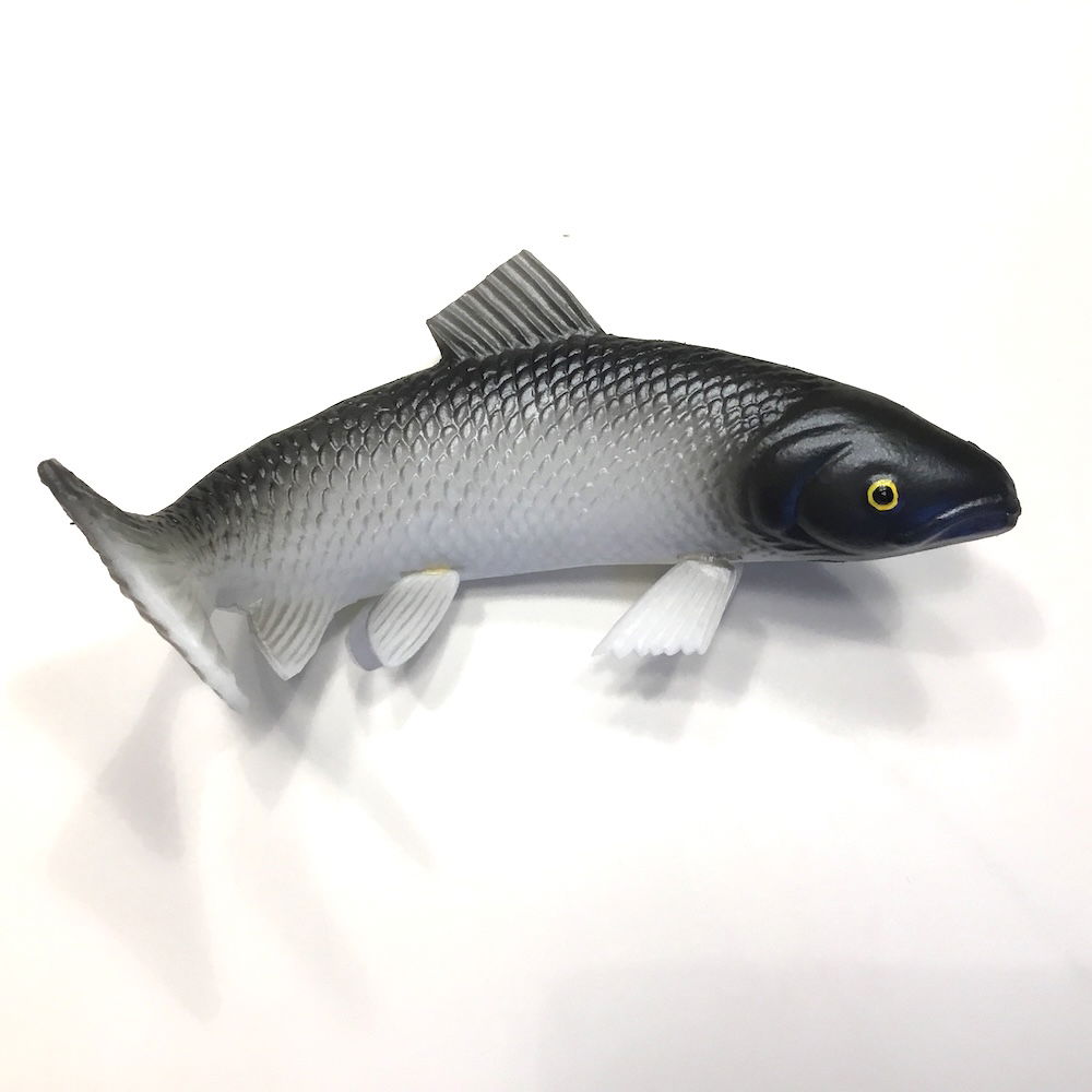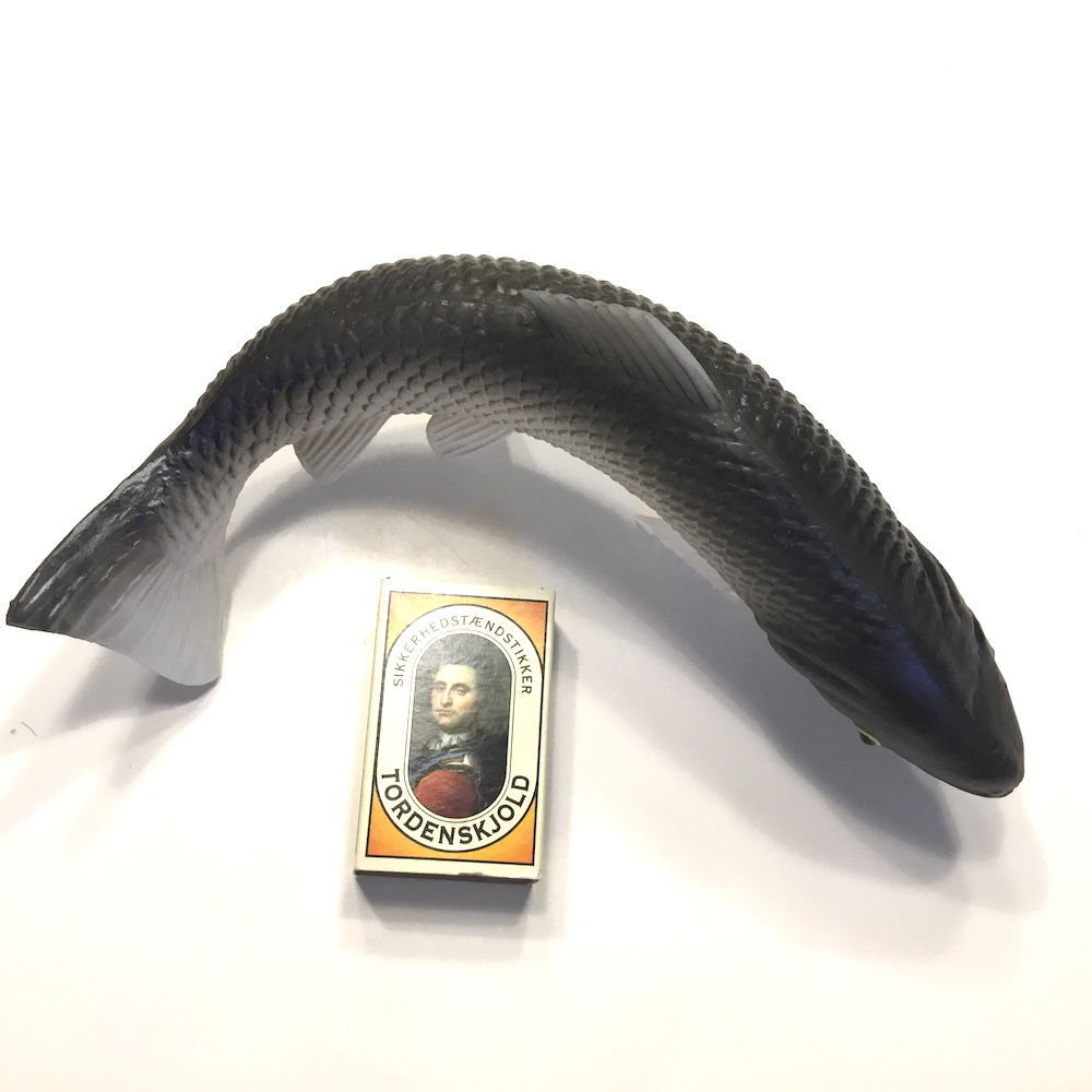 Naturtro laks til dekoration den er lavet i plast og den er meget naturtro svømmende