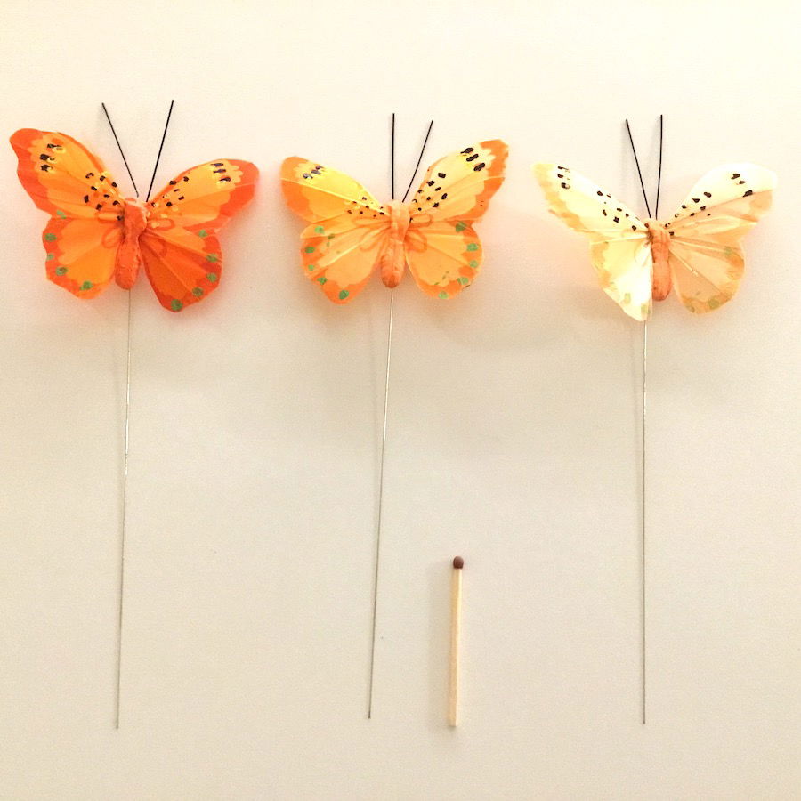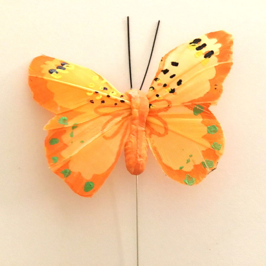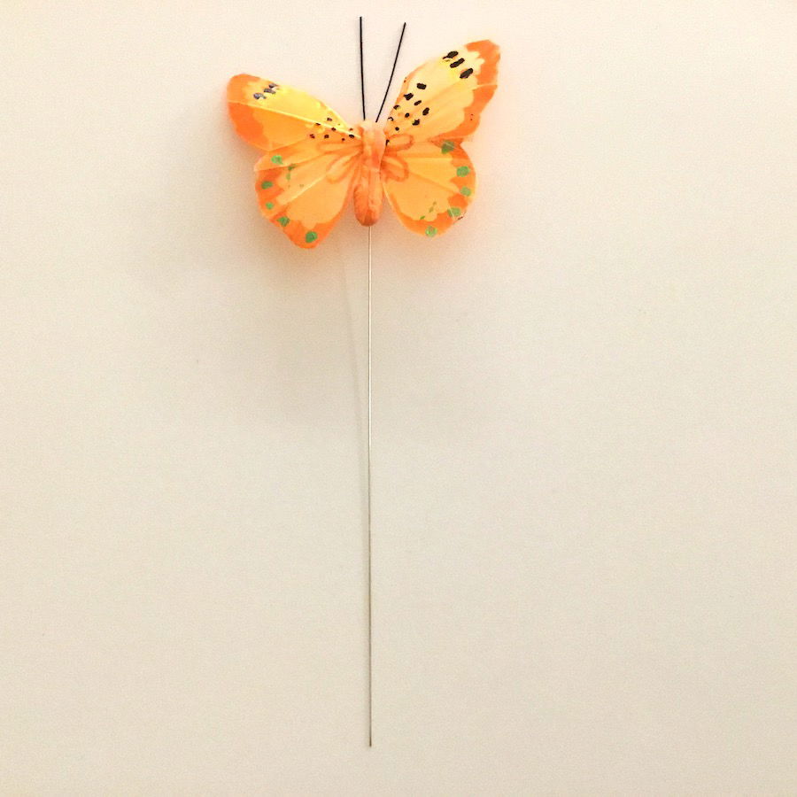 Denne sommerfugl har en påsat ståltråd, så de nemt kan sættes fast på eksempelvis planter og blomster.