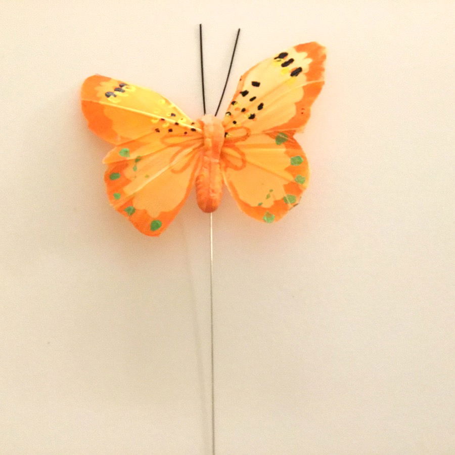 Orange sommerfugl på pind dekorativ med grønne pletter meget smuk form og farve