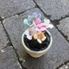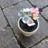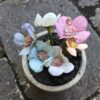 Pastelfarvet blomster i lys grå lerpotte super dekorativ