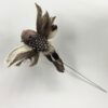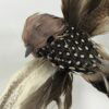 Prikket brun flyvende fugl på spyd og fuglen har rigtige fjer og meleret fjer foran