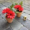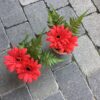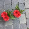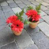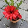 Rød gerbera i lerpotte med bregne blade og legakugler i bunden