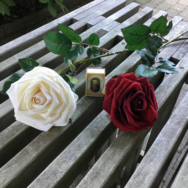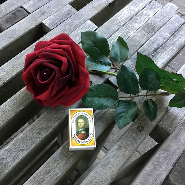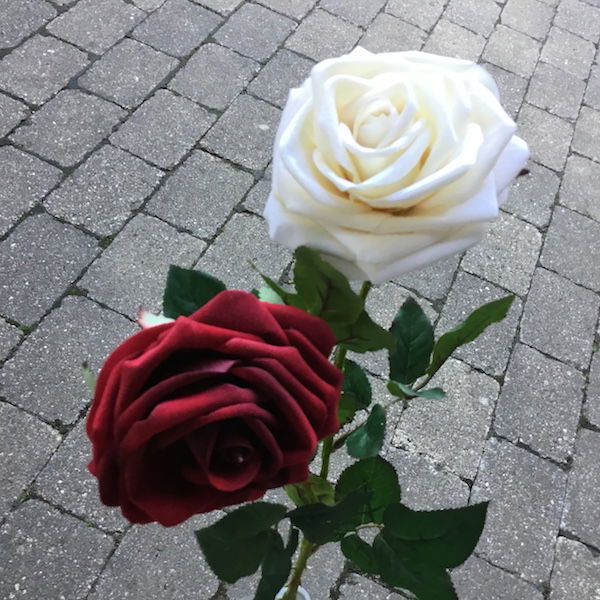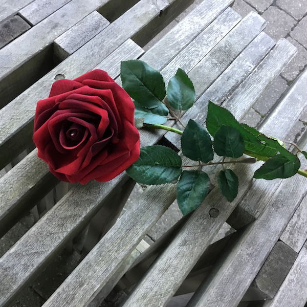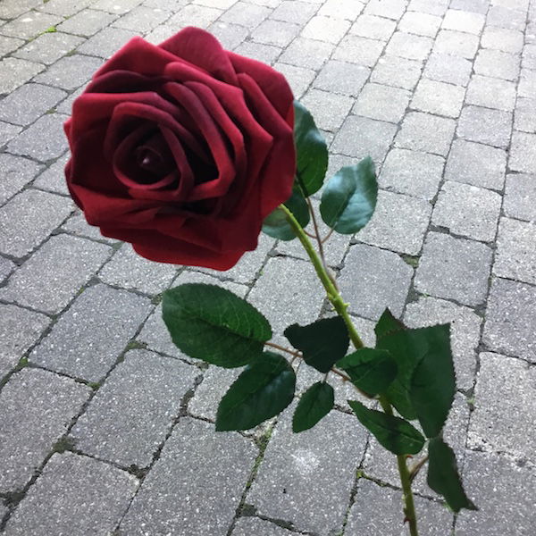 Rød høj velour rose hovedet kan tages af – og på stilken