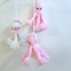 Rosa baby blæksprutte uro til ophæng 3 stk som hænger i en krans