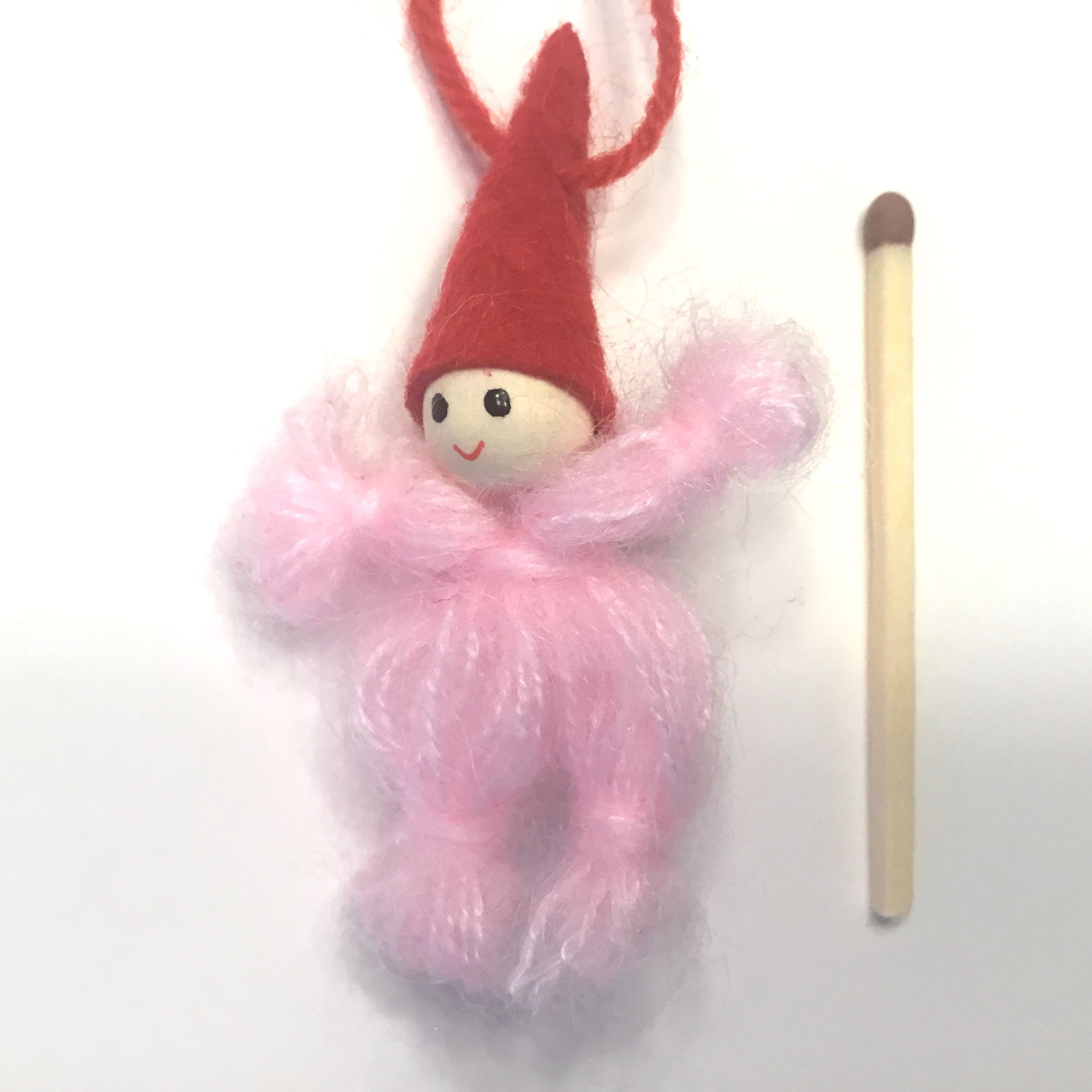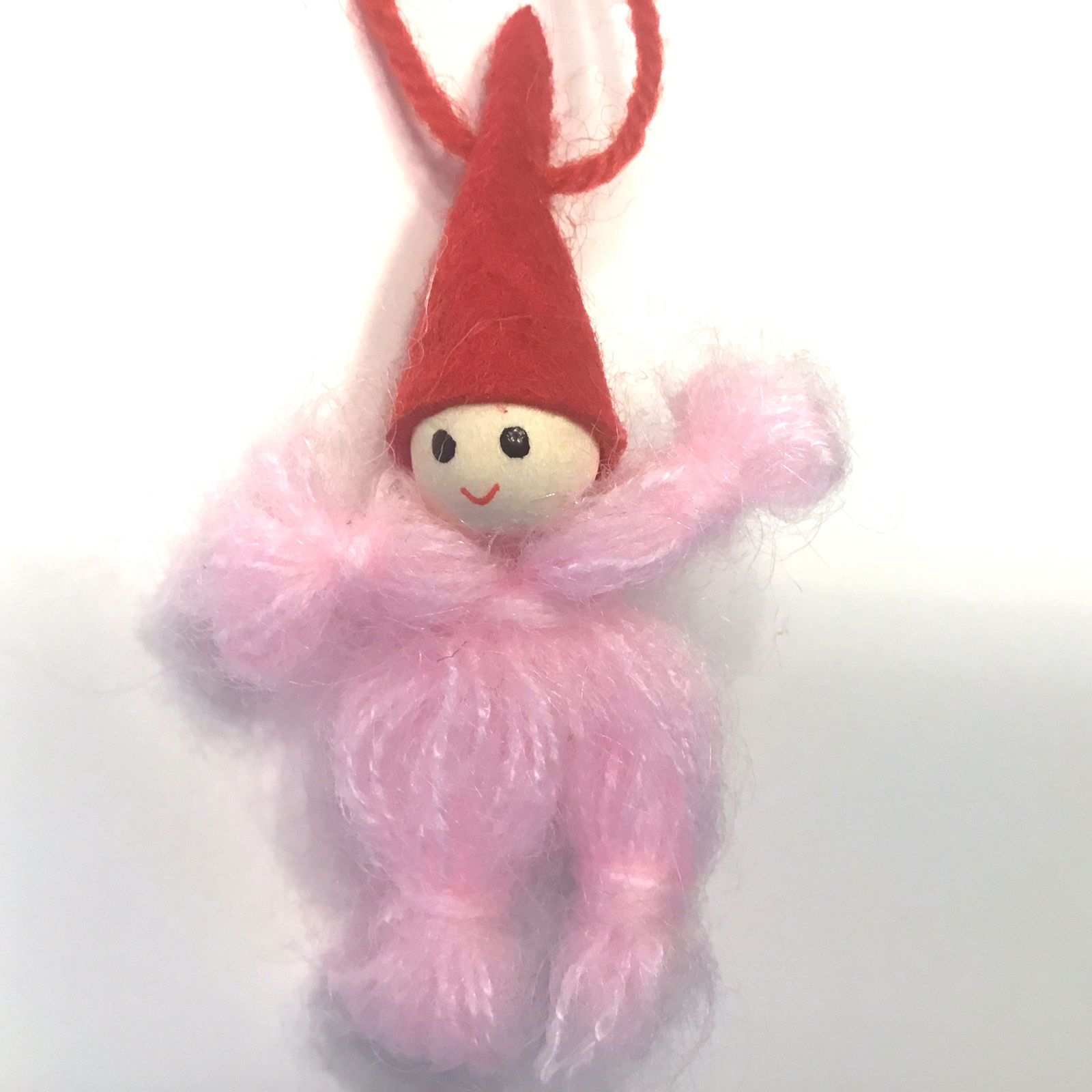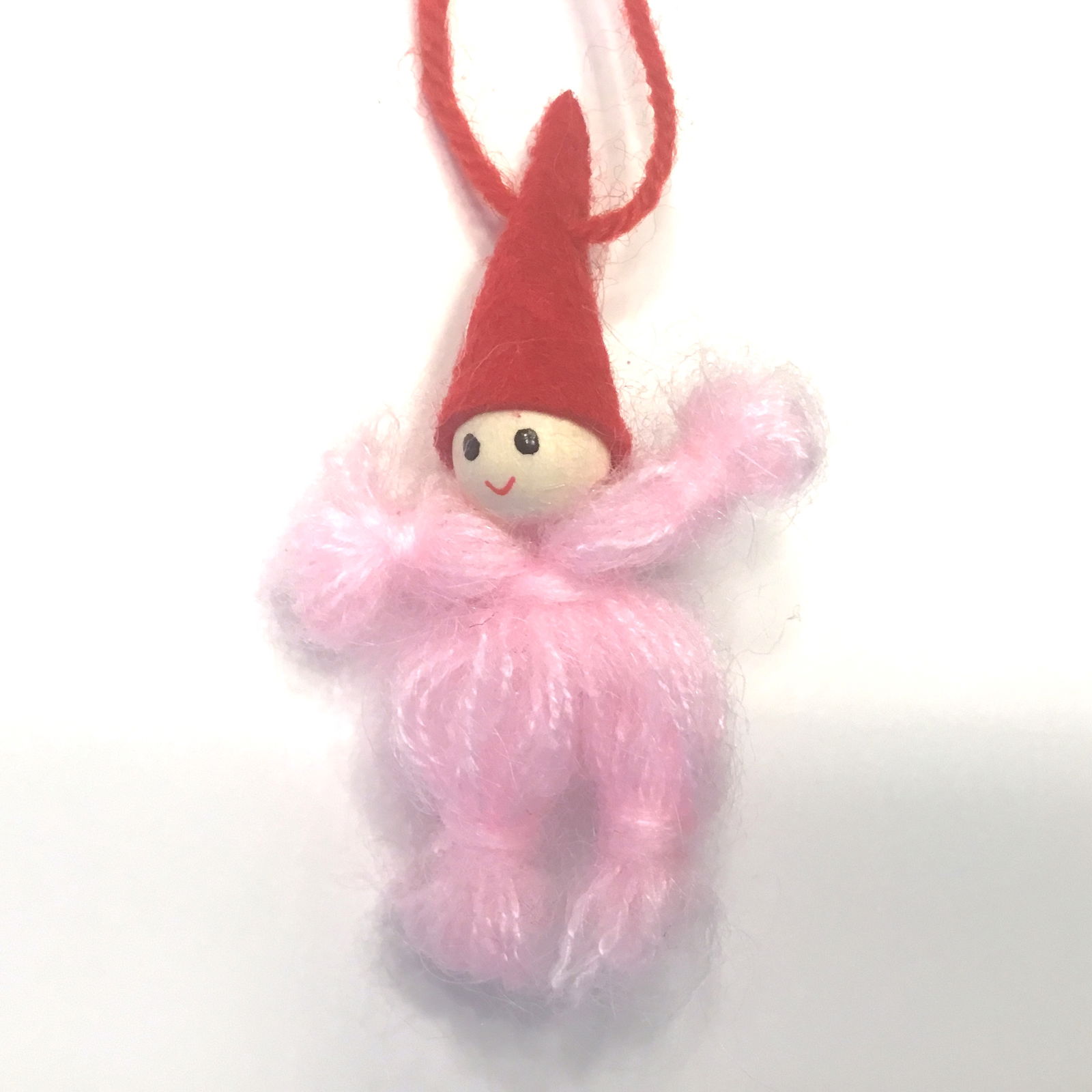 Rosa garnnisse med nissehue og snor ophæng super dekorativ