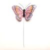Sommerfuglen har ståltrådspind nedenunder, pinden er 15 cm lang.