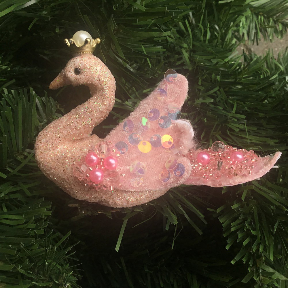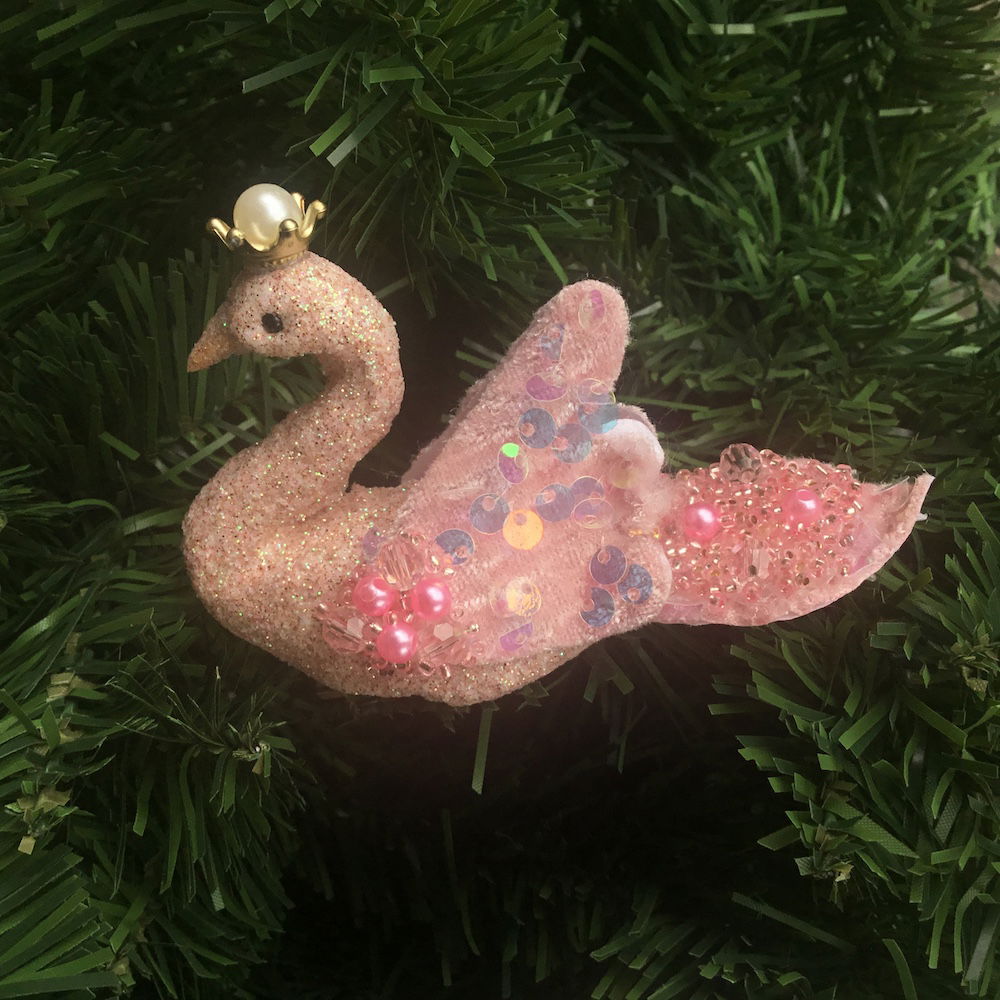 Elegant smuk svane til trollegrenen eller juletræet, svanen har en klemme nedenunder så den er lige til at hænge op