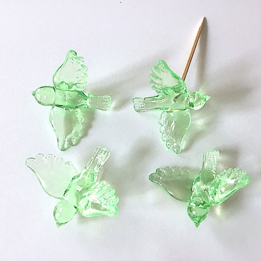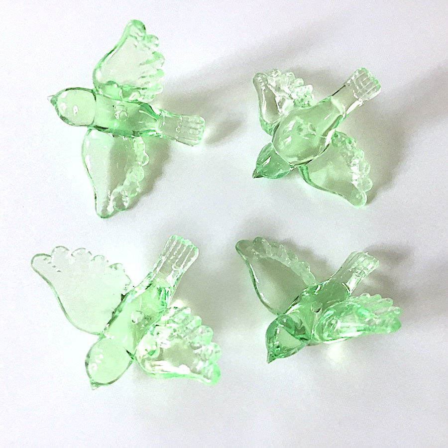 Fuglene findes i 4 forskellige farver Lilla – blå – grøn og en i klar/gennemsigtig plast