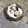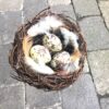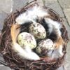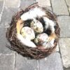 - Hver rede er håndlavet af naturmaterialer og pyntet med tre små æg (i plast) i naturlige farver.