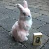 Stor rosa kanin der står op meget naturtro og der findes også i en der sidder