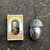 Stort naturtro sølv agern med snor til ophæng meget dekorativ