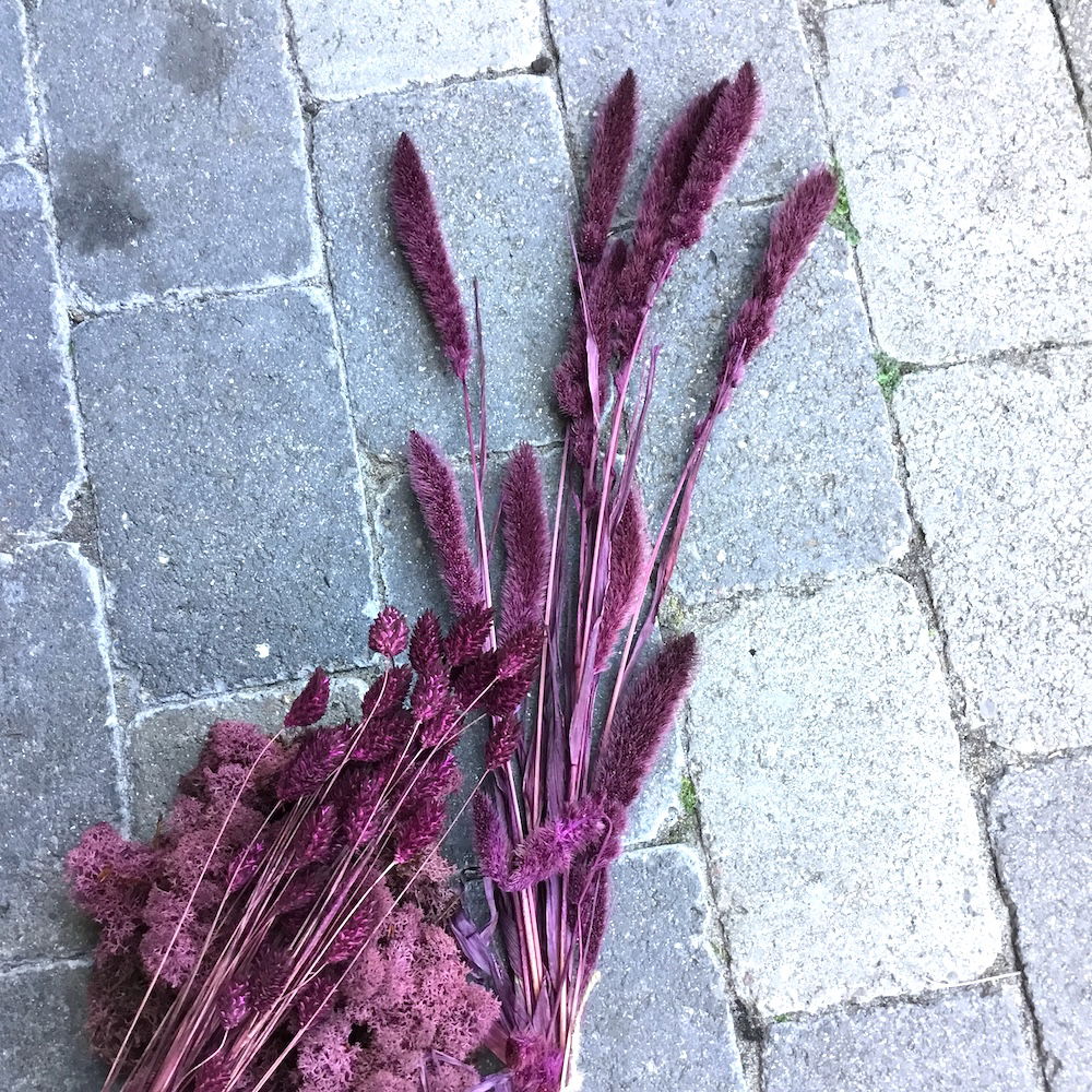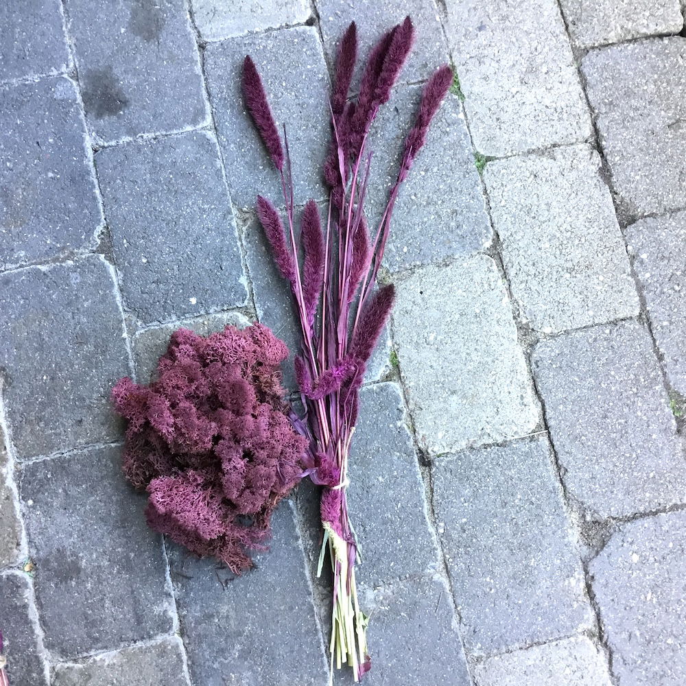Tørrede blomster i blomme farve som kan anrettes som man selv ønsker