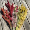 Vi sælger mindre bundter af individuelle farver så man selv kan sammensætte sin egen buket af tørrede blomster.