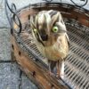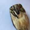 Uglen har brune fjer på ryggen og gyldent bryst, og den er super fin at bruge i halloween dekorationer, også temaer med skovbund og grene og selvfølgelig til vinterudstillinger